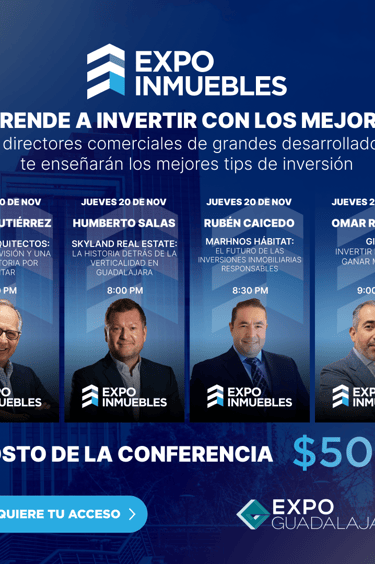 Conéctese con desarrolladores de prestigio, y asista a conferencias de expertos para dominar las tendencias de plusvalía e inversión inmobiliaria.
